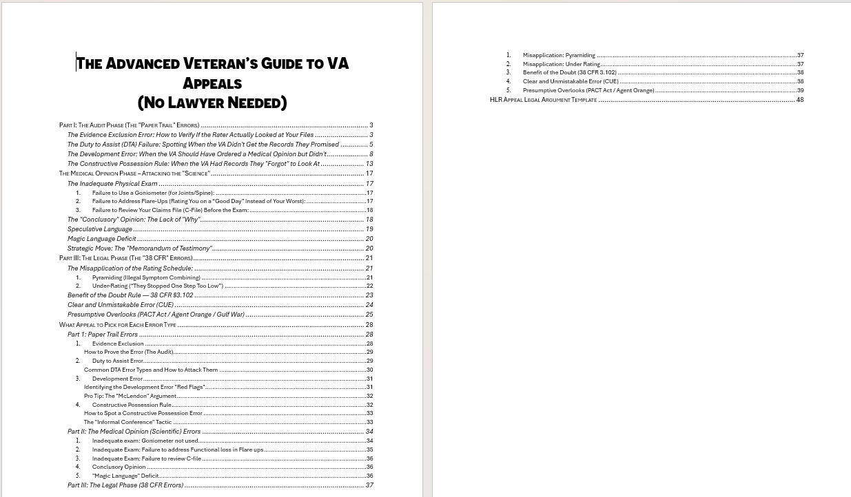 This is not a beginner overview. This book is a deep strategic breakdown of the VA appeals system from an error-based perspective — teaching you how to match specific denial issues to the strongest possible appeal path.